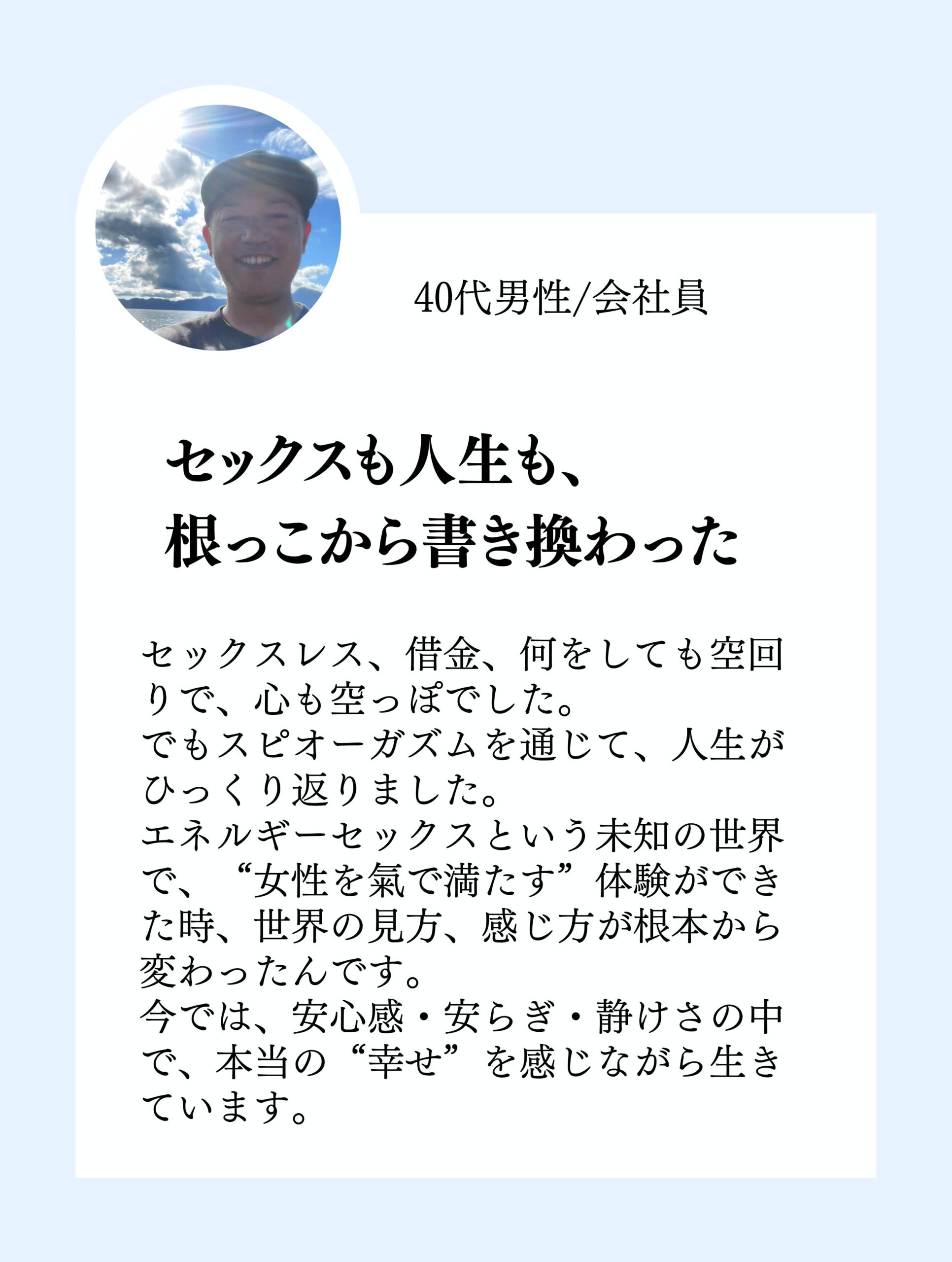 2021年にオンライン講座を開始し、2024年には魂と身体を一致させ“愛の状態”に導く【性エネルギー覚醒メソッド】を開発。